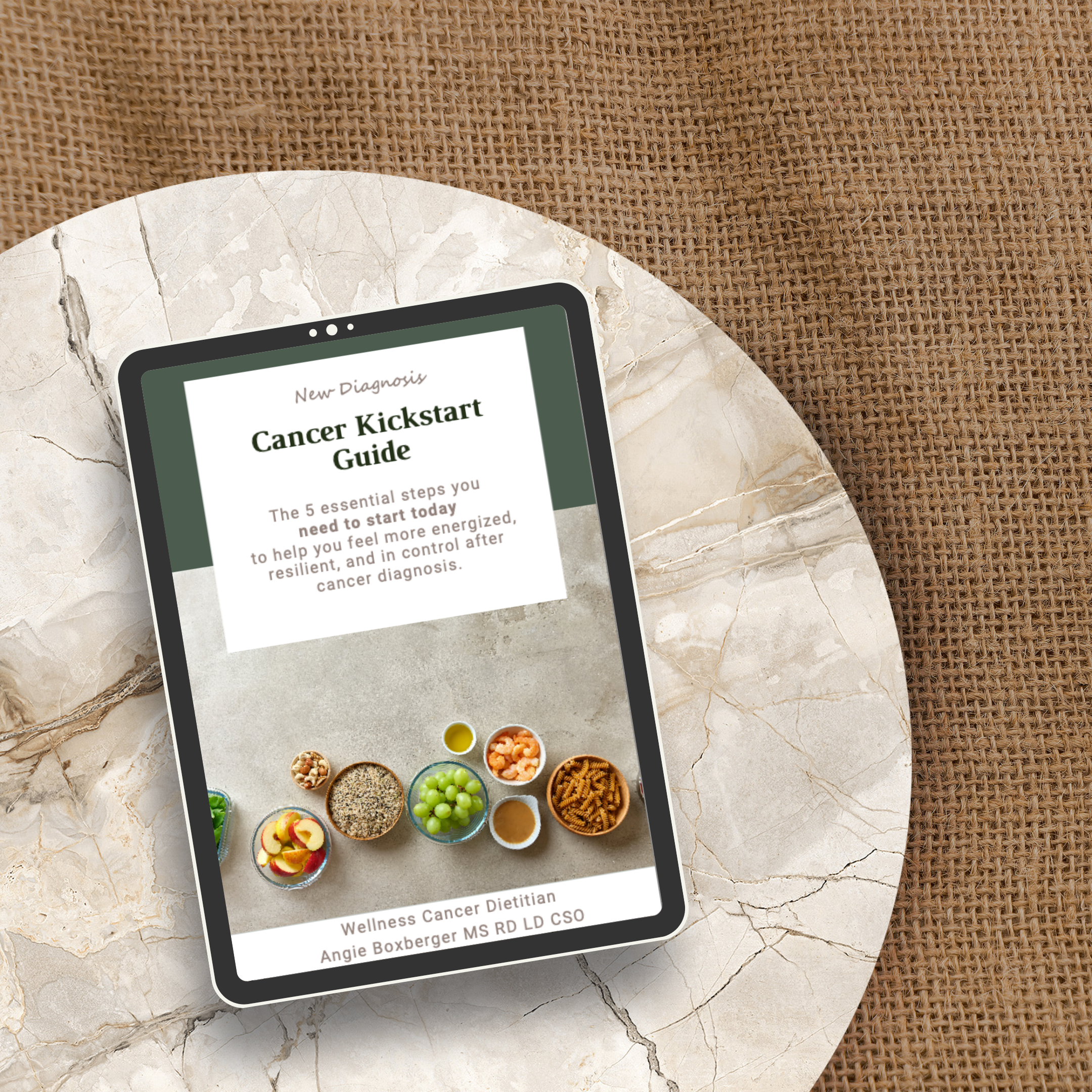Whether you’re newly diagnosed, deep into recovery, or just looking for peace of mind, these free tools are here to help you cut through the confusion, ease food fears, and make nourishing choices you actually enjoy. All resources are created by a board-certified Oncology Dietitian (MS, RD, CSO) specializing in real-life support for survivors.
